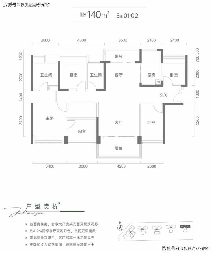 140㎡4+1房2卫998-1145万 单价:7.12-8.18万