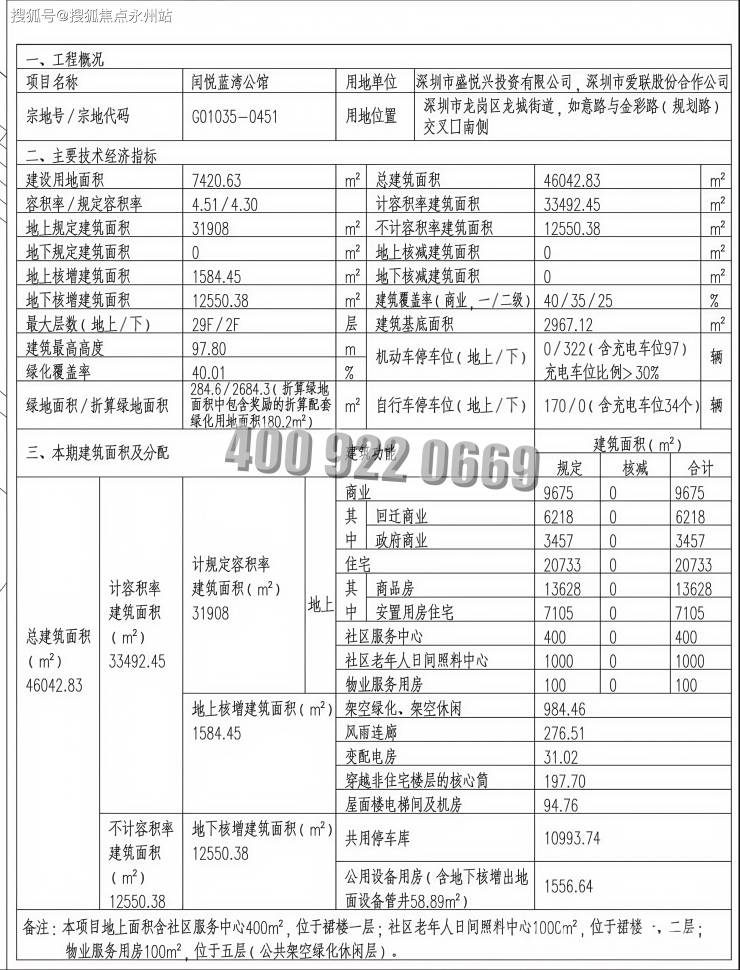 闰悦蓝湾公馆,由深圳市盛悦兴投资有限公司与深圳市爱联股份合作公司共同开发,总占地面积约7420.63㎡,总建筑面积约4.6万㎡,计容建筑面积约3.35万㎡,容积率4.3,绿化率40.01%,共由2栋27-29层高住宅组成,其中1栋1单元住宅29F,1栋2单元住宅27层。