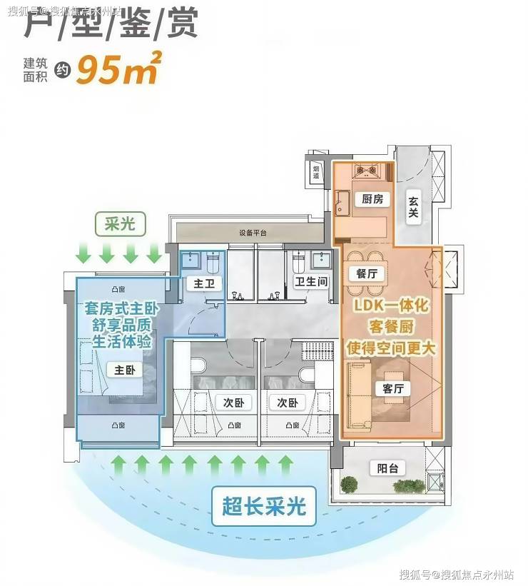 建面 95㎡3 房 2 厅 2 卫(东北朝向)