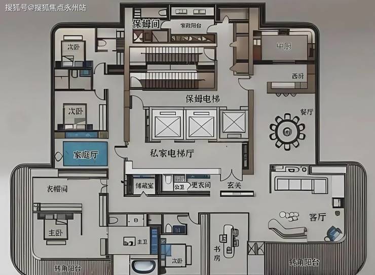 1A栋:约495㎡户型5+1房3厅5卫,1栋,东南向,每层一户,43层,165.77米,3梯1户,南北通大平层,在地块中间,南侧会有酒店遮挡。总价预计7570-10250万!