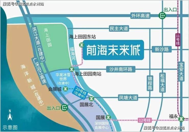 项目交通便利,周边直线3公里范围内有3个地铁站,距离最近的是海上田园东站,项目紧邻12号线海上田园东站A出口,直线距离约200米。海上田园东站可实现与地铁1号线、2号线、5号线、11号线、20号线、15号线(建设中)及18号线(规划中)无缝换乘,快速接驳全城。周边1公里内有20个公交站,距离最近的鑫鑫田工业园站仅有38m,公共交通极为便捷。此外,还有广深沿江、京港澳、沈海、外环高速等高速环绕;滨江大道(在建中),广深公路,宝安大道三条快速路、福永码头、宝安大空港码头(在建中)、深圳宝安国际机场等交通枢纽,构建起了通达大湾区核心城市及国际城市的快速通道。