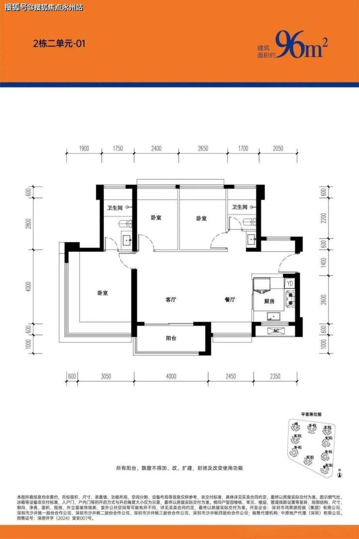94㎡的3房2厅2卫:设计的是竖厅格局,动静分区,客厅3.4米开间,S墙设计预留冰箱卡槽位,3个卧室分别为3.7/2.7/2.35米的宽度,主卧270°环幕飘窗视野,U型厨房,阳台进深1.6米,西南朝向。