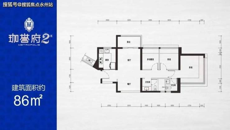 86㎡的3房2厅2卫:设计的是竖厅南北通透格局,客厅3.2米开间,3个卧室分别为3.2/2.75/2.4米的宽度,主卧270°环幕飘窗视野,U型厨房,阳台进深1.3米,主朝西北、东北、东南或西南朝向。