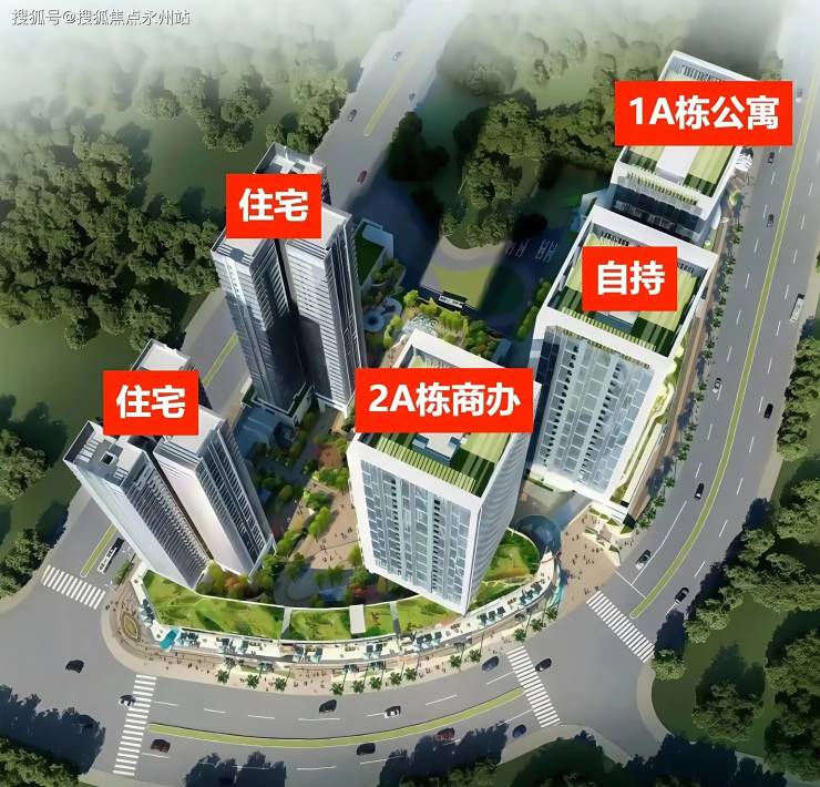 建筑:住宅2栋,公寓1栋,商办2栋(其中1栋自持为集团总部)