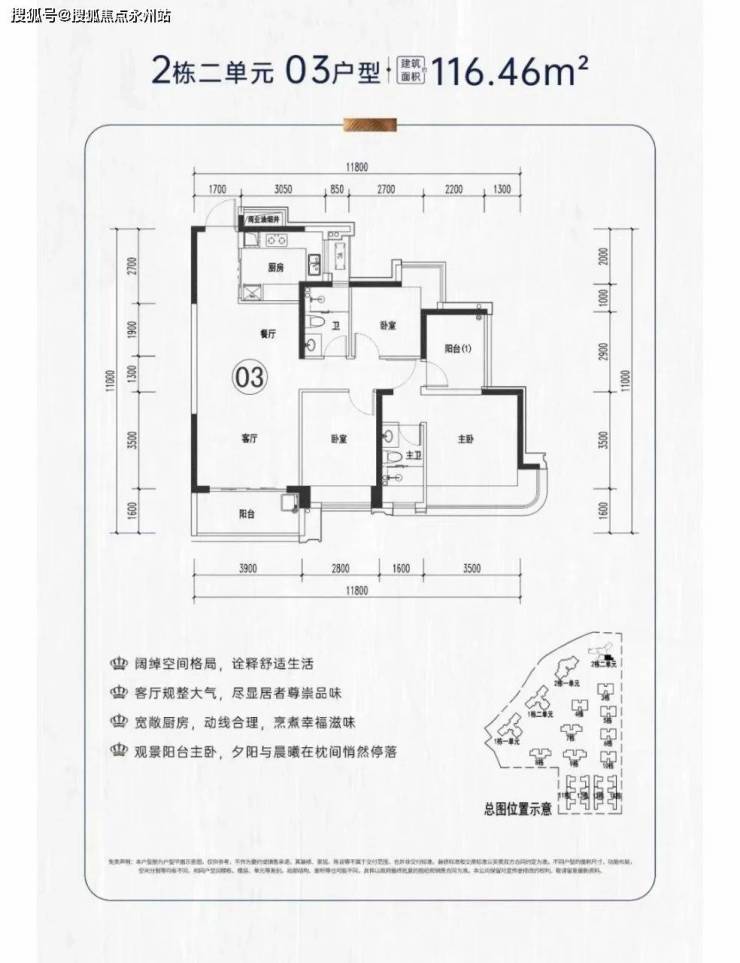 项目户型介绍:社区产品面积段包括112-116-120㎡4房2卫,195㎡4+1房4卫,本次推出116户型4房2卫