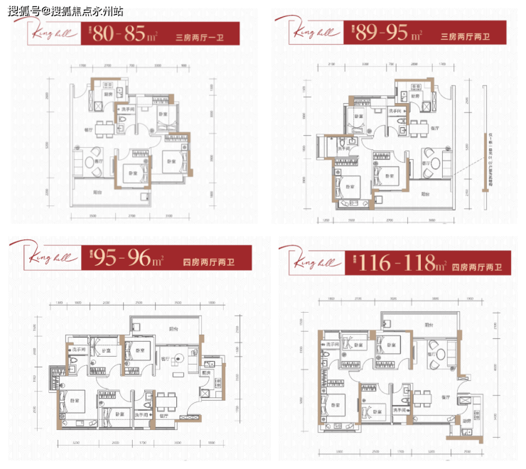85-89㎡户型设计朝东或者南,并采用传统的竖厅布局,客厅开间3.5-3.6米,亮点为客厅正出的超大阳台设计,3个卧室空间也足够大,刚需上车还是不错的!