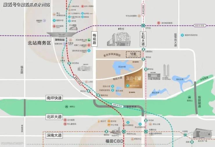 金光华溪山君樾项目地址:位于深圳龙华区梅坂大道236号,属于龙华民治街道。项目分三期开发,是集双拼、联排、叠加别墅,山景高层的湖区高端住宅项目。十年沉淀,配套成熟齐全,稀缺湖山资源价值,终极改善住宅。