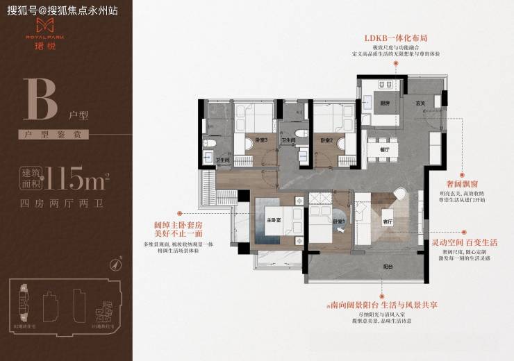 改善客群:115㎡B 户型(南北通透端头位),通风与景观优势显著。