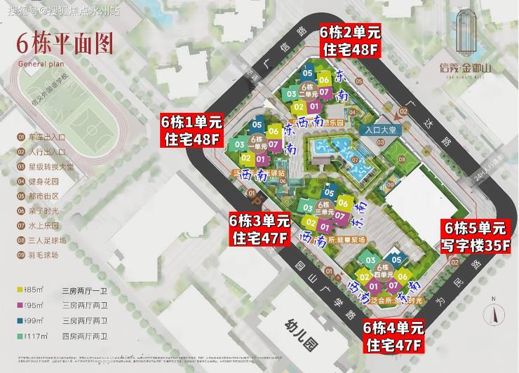 项目总建面约115万㎡,分6个地块开发,涵盖高端住宅、总部办公、时尚商业及国际教育,是片区内唯一超百万建面综合体19。03地块首推984套房源,目前剩余部分 80-119㎡三至四房在售。