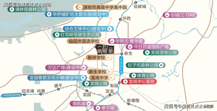 「新霖荟璟」位于龙岗区龙岗街道新生社区新城路与龙凤路交汇处东侧,项目共分三期开发,一期是新霖荟邑,目前已经交房入住,二期新霖荟璟,三期新霖臻邑均在建设中,项目东侧是水岸新都,3号地铁延长线“新生站”距离约600米。