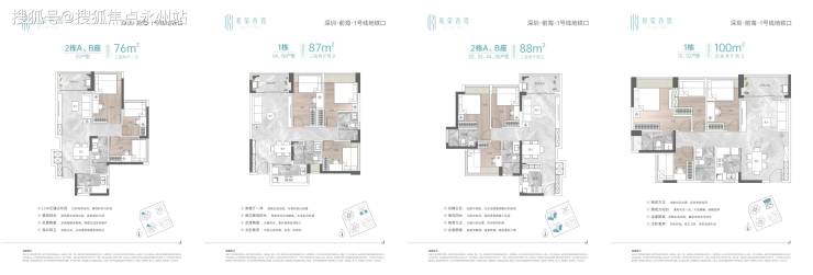 项目每个户型均做到全屋飘窗,使用率高达81%。其主力建面约87-88㎡ 3房2厅2卫,大部分做到了全南向采光,强调住房本身的宜居性的同时兼顾功能与美感。