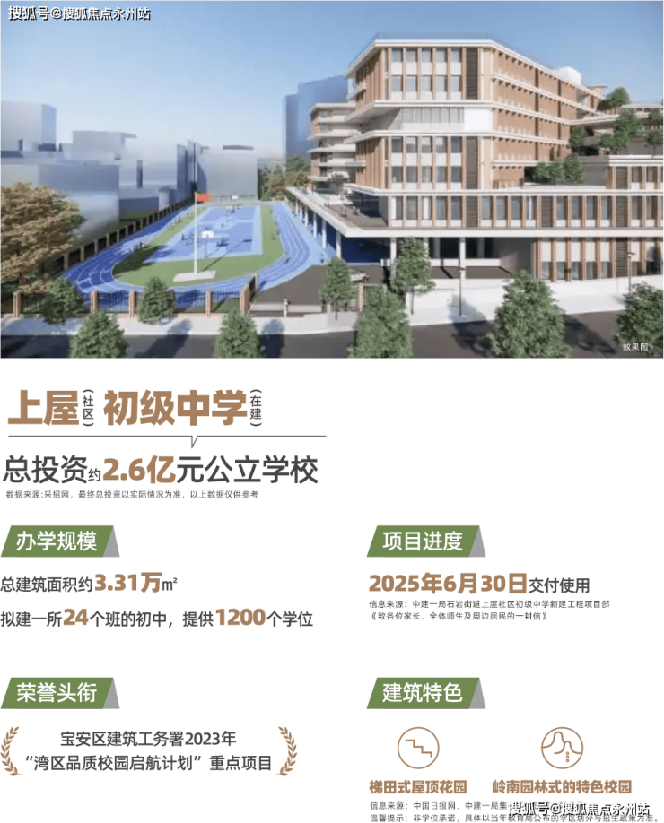 在建学校:上屋初级中学(一路之隔,2026年竣工),规划36班,将新增1800个学位。