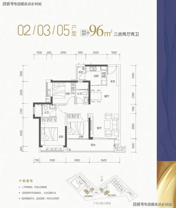 设计上都是比较讨喜的配置,如动静分区、双阳台、客厅宽景阳台等。