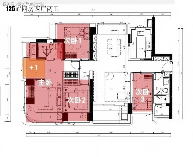 91-105㎡的 3+1 房:适合家庭结构较简单的改善客户,空间布局紧凑且功能齐全,通过弹性方厅设计可灵活调整使用场景。