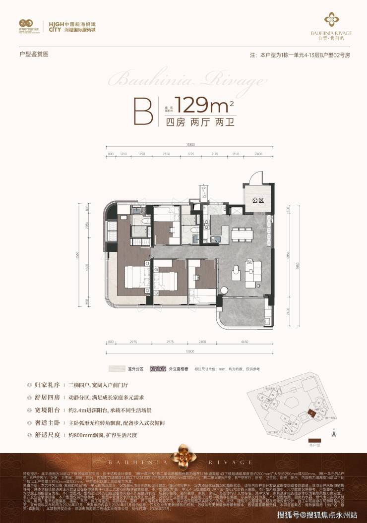 项目摒弃刚需小户型,主打建面约108-148㎡3-4房纯改善新规户型,所有户型均为东南或西南朝向,楼栋采用错位排布设计,最大化释放视野与采光面,实现“一户一景”,同时具备高拓展率(拓展后得房率91-95%),部分户型配备独立电梯厅、270°弧形飘窗,空间利用率与居住舒适度拉满,精准覆盖二胎家庭、三代同堂等多元改善需求。(深圳前海自贸·紫荆屿售楼处官方电话:400-992-0669)