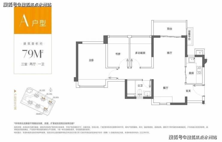 设计的是竖厅格局,客厅3.3米开间,S墙体设计预留双开门冰箱位,动静分区,三开间朝南,3个卧室宽度分别为3/2.8/2.5米,得房率88.87-90.61%(包含赠送),L型厨房,阳台进深1.5米,朝西南或东南向。