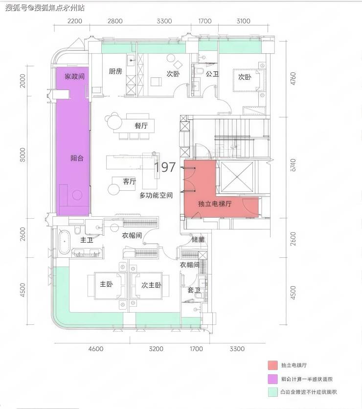 197㎡阳台达到8米,237㎡阳台达到11.8米,更大尺度保证采通风和视野。