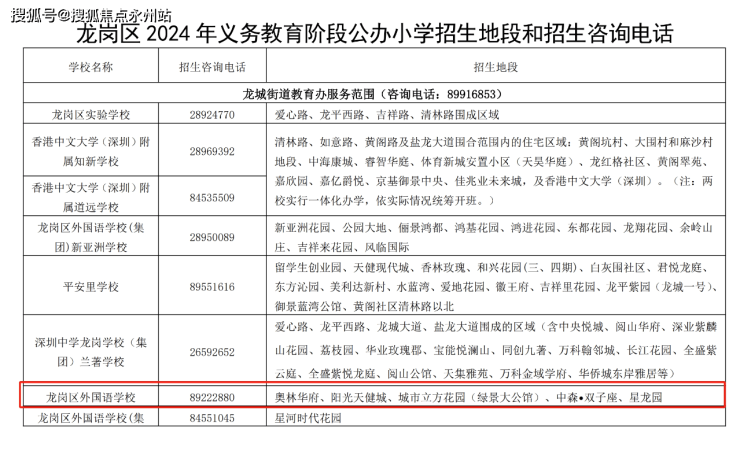 学校配套:星龙园自带1所6班制幼儿园,根据2024年龙岗区教育局最新的学区划分,小初学位都是划分在家门口的龙岗外国语学校本部,该校成立于2013年,共有58个教学班,学生2800余人,并在2019年6月正式成立了龙岗外国语学校(集团)牵头校,现在已经形成了“一本部六校区”的格局,本部为龙岗外国语学校,成员校区有新亚洲学校、万科城实验学校、星河学校、致美学校、爱联小学、和美小学,分大运新城和坂雪岗两个办学片区。