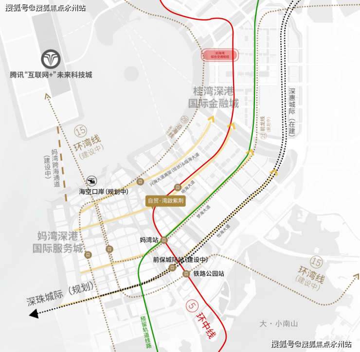 交通方面:周边共规划6条地铁线、2条城际轨道、1条妈湾跨海隧道及1个海空口岸。距5号线妈湾站约550m,听海大道贯穿前海,可短时间通达南山、福田、宝安,快速链接大湾区生活圈