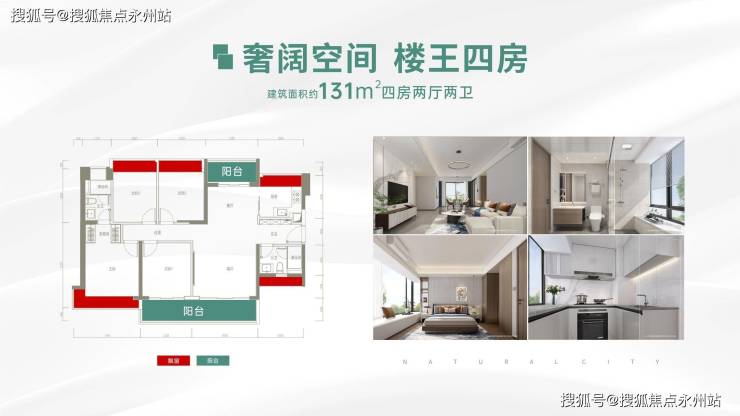 131㎡四房两卫(5/6栋01/04户型)竖厅南北通透格局,双阳台设计,大阳台连接主卧和次卧1,主朝向有东南、西南、南朝向。
