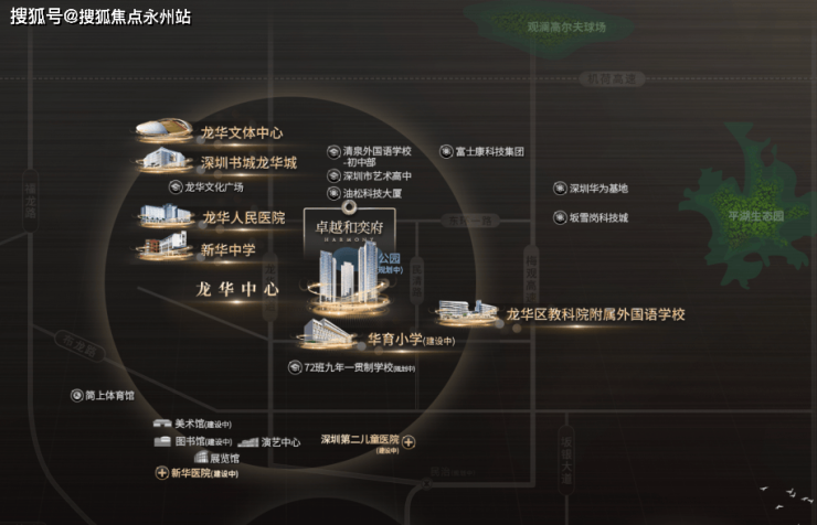 深圳市美术馆新馆、第二图书馆、龙华展览馆、龙华演艺馆(部分建设中)、文体新地标简上体育综合体等市政文体配套,均分布周边,丰盛的物质与精神生活兼得。此外还有优质医疗资源:深圳市龙华人民医院、深圳新华医院(建设中)、深圳市第二儿童医院等大型综合医院环伺周边,护航全家人的健康。