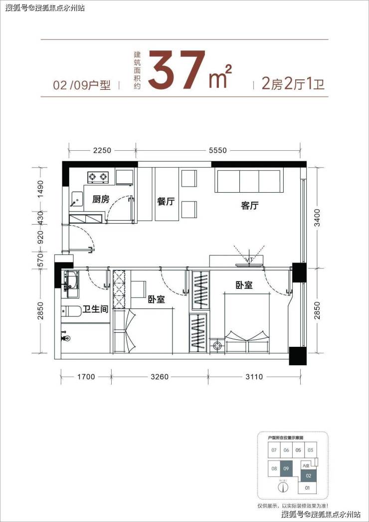 【产品面积】约37㎡小两房(实际套内使用面积接近54㎡)