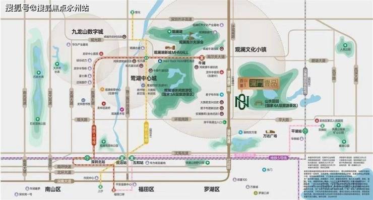 珑门壹品地处深圳中轴,龙华区作为深圳“十四五”规划中的三大都市核芯区之一,其南连福田,北接东莞,战略地位显著。项目所在的观澜片区,更是龙华区北门户,占据梅观产业创新走廊轴芯位置,不仅汇聚了华为、富士康等世界500强企业,还规划有超2500万㎡的旧改项目,未来发展潜力巨大。此外,项目紧邻国家4A级旅游景区——观澜山水田园文化园,自然环境优越,居住舒适度极高。