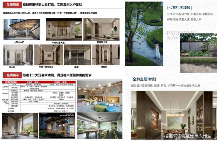 高规格高品质打造小区主入口、楼栋入口及车库归家大堂,打造”三重归家大堂”,实现尊崇入户体验,构建十二大泛会所功能,满足客户居住休闲的需求。