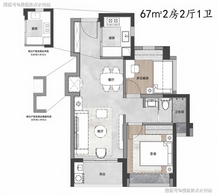 67m²两房两厅一卫210万起