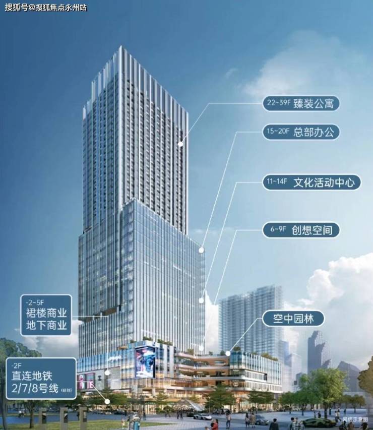 约146m华强北门户坐标,云端臻装公寓、总部办公、可变创想空间,三大产品优势互补。电梯分区,出行高效便捷。涵盖集群商业、空中园林、文化活动中心等多元功能。