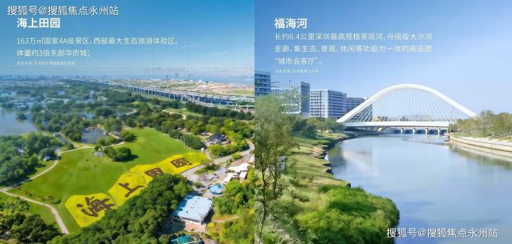 项目享有海上田园与福海河畔公园两大水岸生态绿境环绕,海上田园是占地约163万㎡国家4A级景区,西部知名生态旅游体验区,体量约3倍东部华侨城。