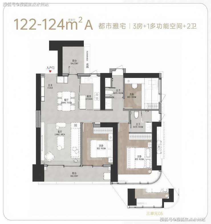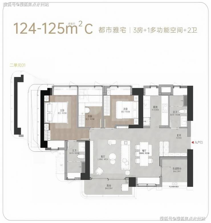 【主力户型】建面约111-125㎡(3房/3+1房)
