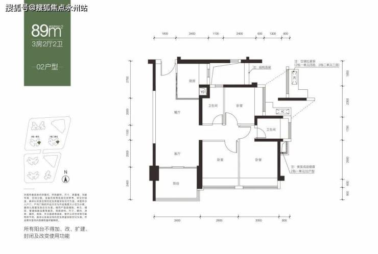 项目有2种户型,82平米的3房2厅2卫,89平米3房2厅2卫,纯刚需户型。