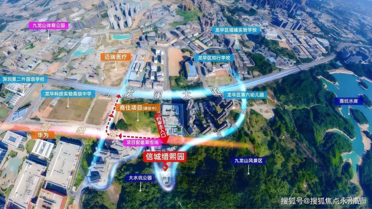 自驾:出门即龙澜大道,可快速接驳观光路、福龙路,通过福龙立交通往福田中心区,门前景悦路正在建设中,预计项目交付前通车,可无缝接驳华为基地和龙澜大道(全程无红绿灯)