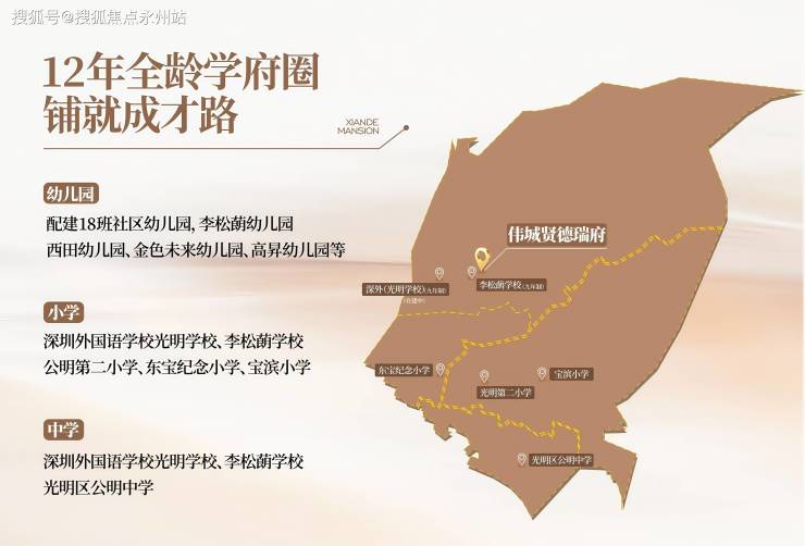 项目第二个最大的优势就是这里的教育资源会比较好,楼下就有李松朗学校,距离1km左右这样,有四大名校直属的深外光明分校,这是四大名校之一的9年一贯制学校。一共有54个班。