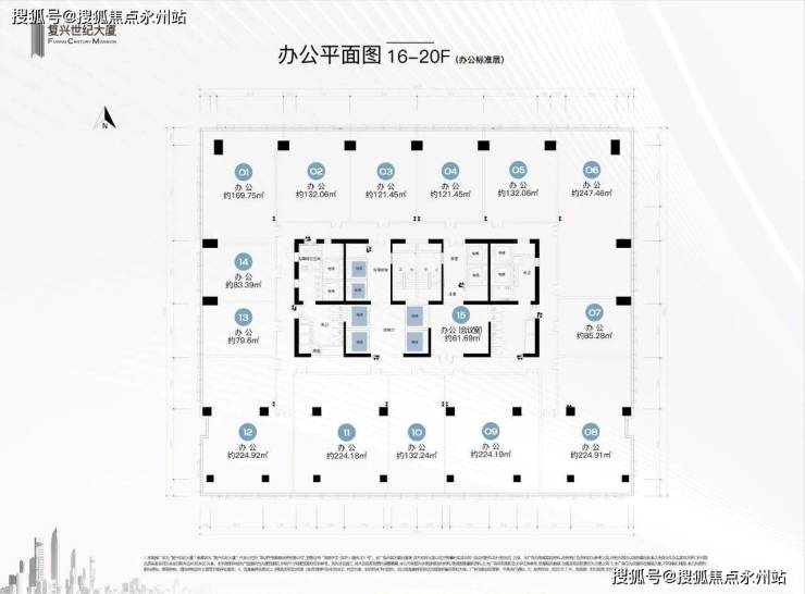 办公产品同样给力,建面61㎡-2300㎡,可自由组合,楼层15-20层,层高4米,办公环境宽敞明亮,6梯15户,高效便捷!
