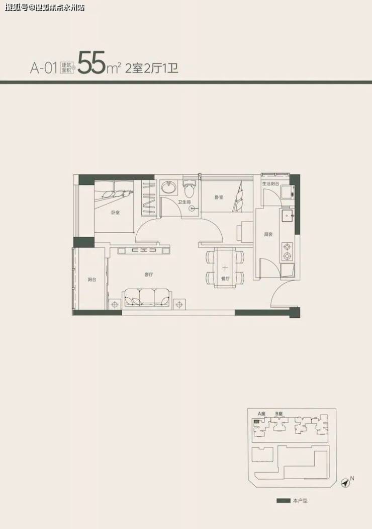 55㎡2房1卫(户型01.02.03.06)116套