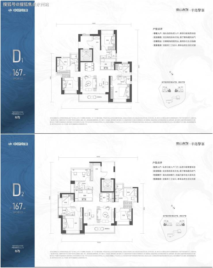 另外,139㎡4房2卫和167㎡5+1房3卫户型则位于32至43层,户数有限,南向视野开阔,可观赏海景,整体居住舒适度高,高区景观无遮挡。