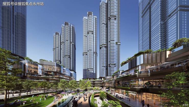 项目由5座超高层+1座小高层建筑,外加一个下沉休闲广场及环广场裙房商业组成