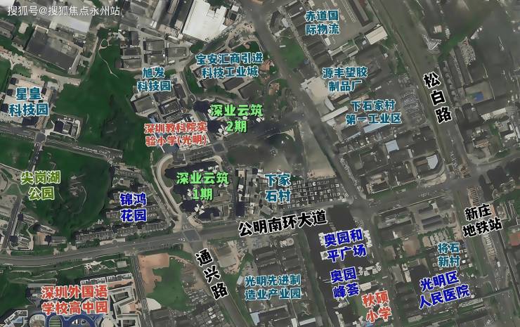 深业云筑,位于深圳市光明区公明街道马田街道石家社区,地处光明科学城大科学装置区,是粤港澳大湾区核心区域及广深科技创新走廊重要节点,承接南山区科技外溢,毗邻东莞松山湖,区位优势显著。项目紧邻地铁6号线公明广场站(1.1公里)及在建13号线公明南站(约700米),未来可直达南山科技园、后海总部基地;周边龙大、南光高速无缝衔接福田、南山,交通便捷