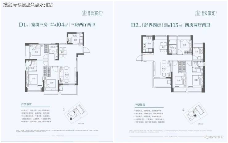 113㎡的4房2厅2卫:适合多人家庭居住,三开间朝南,客厅和主卧都是东南向,更加惬意奢阔。