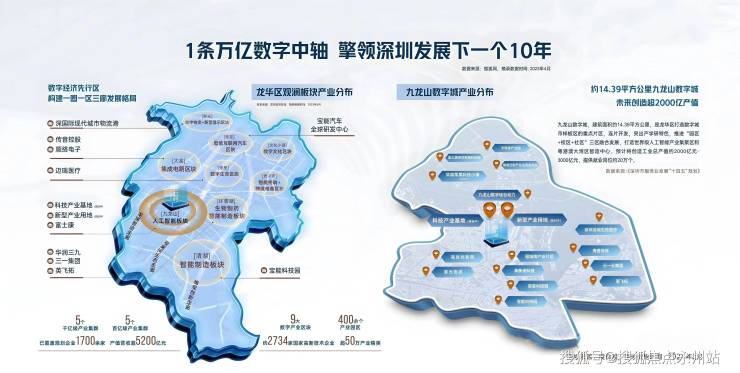 九龙山数字城是项目所在区域的最大亮点,规划面积约14.39平方公里,总体面积超过南山高新区,区域内已汇聚华为、迈瑞医疗、传音控股等近300家规上企业,形成三大千亿产业矩阵,规划创造20万个就业岗位。