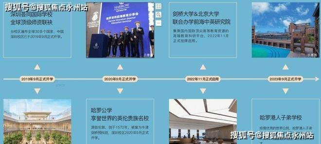 世界著名学校英国哈罗公学(已开学)、哈罗港人子弟学校(在建中)、美国荟同国际学校(已开学),以及剑桥大学&北京大学联合办学前海中英研究院(已开学)