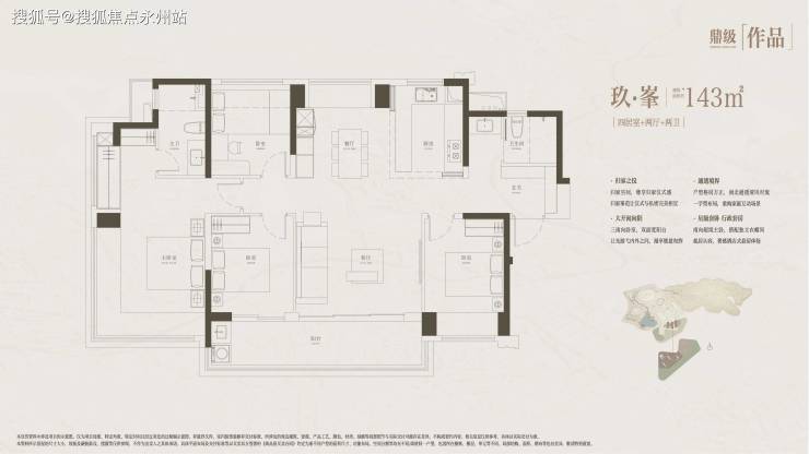 主力户型:面积有126-143㎡的4房2厅2卫,139m²的3+1房2厅2卫,197-206-282㎡的4房2厅3卫户型,都是设计的大平层格局,有少量几套顶复户型。