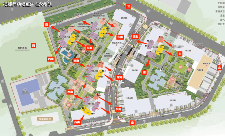 面积:77-114㎡3-4房 车位比:2554个1:0.82