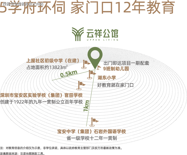 项目自带1所9班制幼儿园,根据宝安区教育局24年最新的学区划分,项目小学和初中共同的学区有:宝安区实验学校(集团)官田学校、安中学(集团)石岩外国语学校、湖光学校、新安中学、龙田学校。