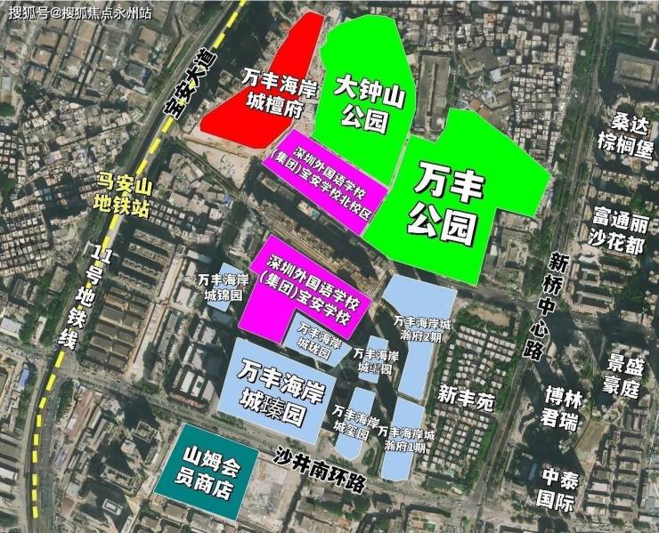 万丰海岸城,位于深圳市宝安区新桥街道大朗山片区,是万丰区域城市更新项目的核心组成部分,占地约2平方公里,总建筑面积超500万㎡。项目紧邻地铁11号线马安山站东侧约300米,处于深圳"西部城市中心"规划的核心区域,也是新桥街道"人、产、城有机融合发展"战略的实施载体。新桥街道作为深圳广深港科技走廊的重要节点和黄金内湾规划的关键区域,正从传统工业重镇向现代化城市中心转型,檀府项目正是这一转型的标杆之作。(深圳宝安万丰海岸城檀府售楼处电话:400-992-0669)