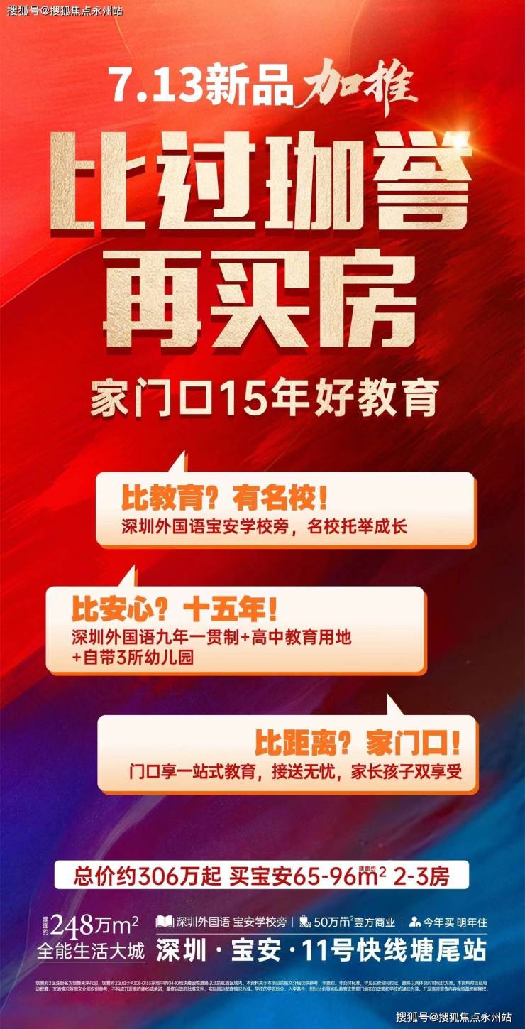 项目主打“地铁旁+大型综合体+深外宝安学校+上车门槛低”的卖点,项目还有一大亮点就是名校深外更为确定了!之前一直是只有深外宝安本部由于学位有限很多家长怕后期学位不够!在2023年12月11日,宝安区教育局发布通知,决定优化调整深圳市宝安中学(集团),新组建深圳外国语学校宝安学校(集团)等4个教育集团。