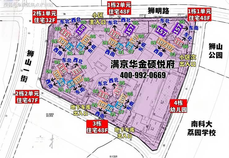 满京华金硕悦府,由满京华集团打造,总占地面积约2.61万㎡,总建筑面积约21.8万㎡,计容建筑面积约15.53万㎡,容积率5.95,绿化率30.01%,共由5栋32-48层高的住宅组成,其中1栋1/2单元住宅48F,2栋1单元住宅32F,2栋2单元住宅47F,3栋住宅48F,4栋是1所幼儿园,还配建有社区菜市场。