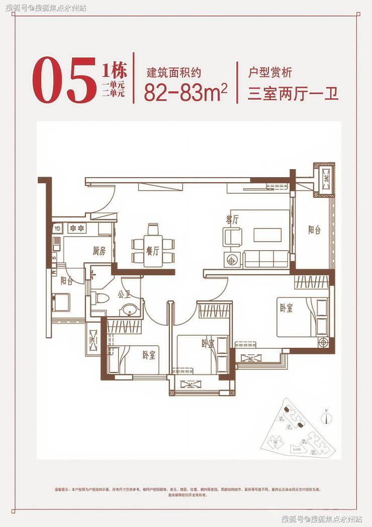性价比之选:82-83㎡三房端头位,总价333万起,适合三口之家。